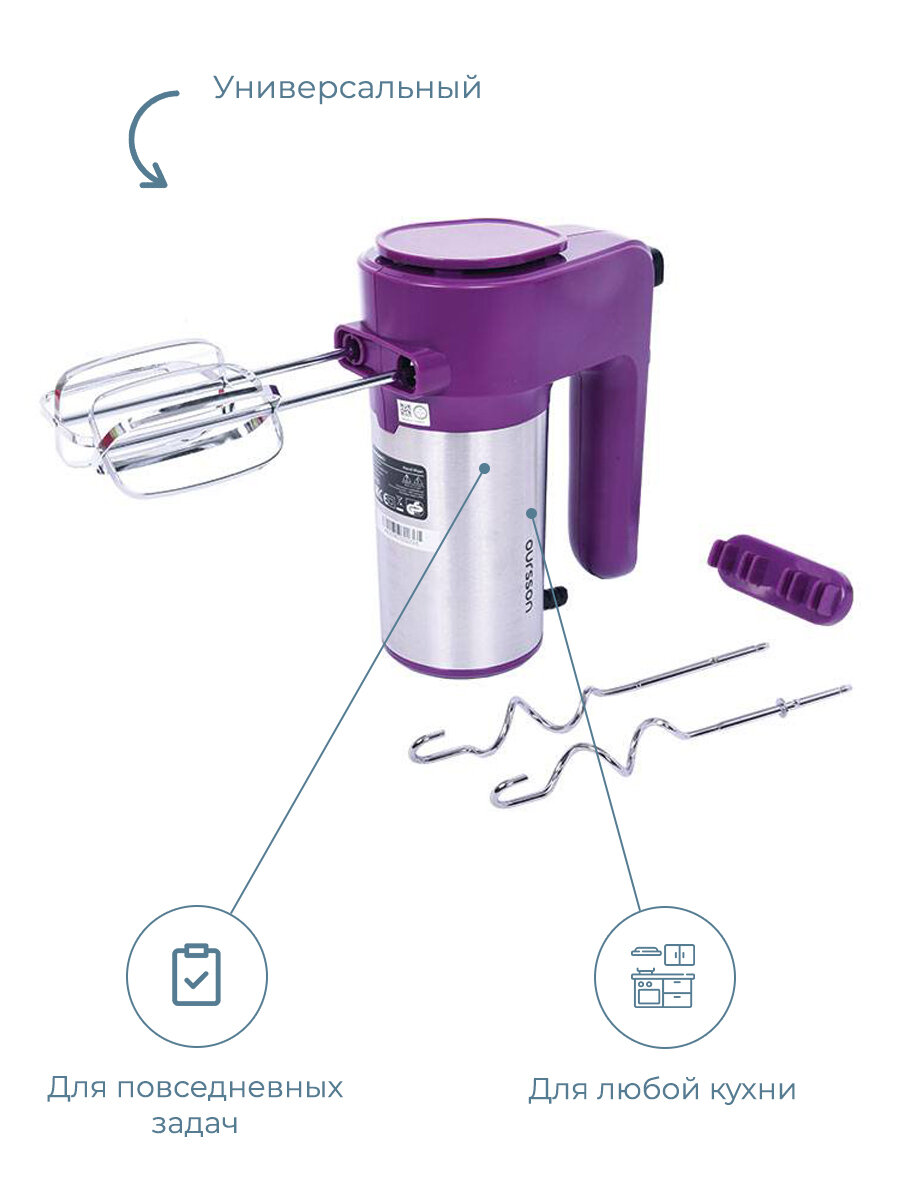 Купить Миксер Oursson HM4001/SP, ручной, 400 Вт, 6 скоростей, фиолетовый