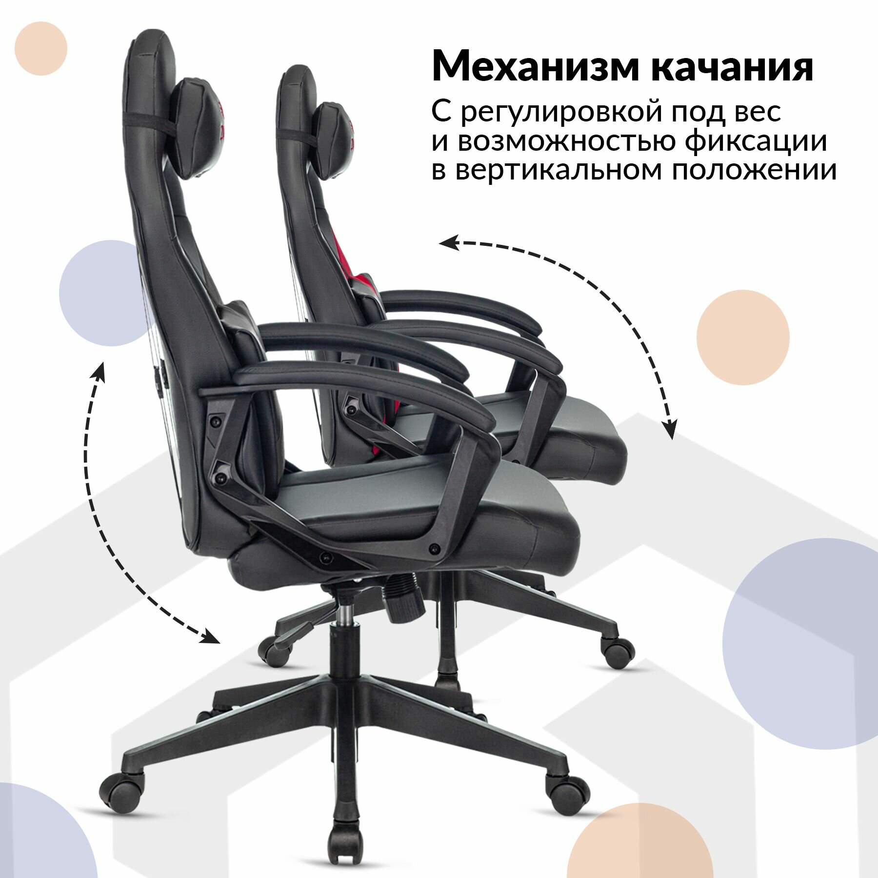 Кресло компьютерное игровое Zombie, экокожа, черное, красное, крестовина пластик - Кресло геймерское, с подголовником