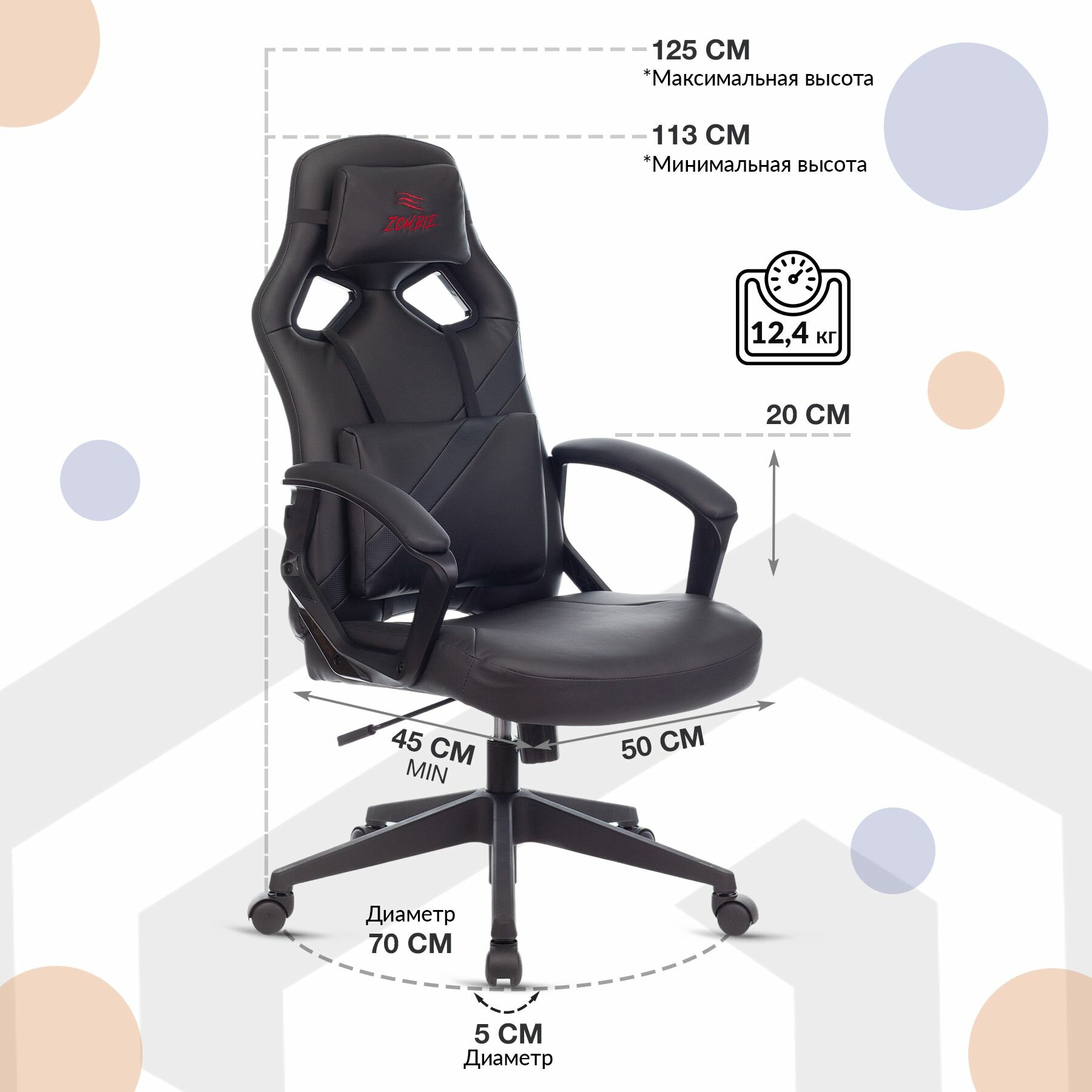 Компьютерное кресло Zombie DRIVER игровое, обивка: искусственная кожа, цвет: черный