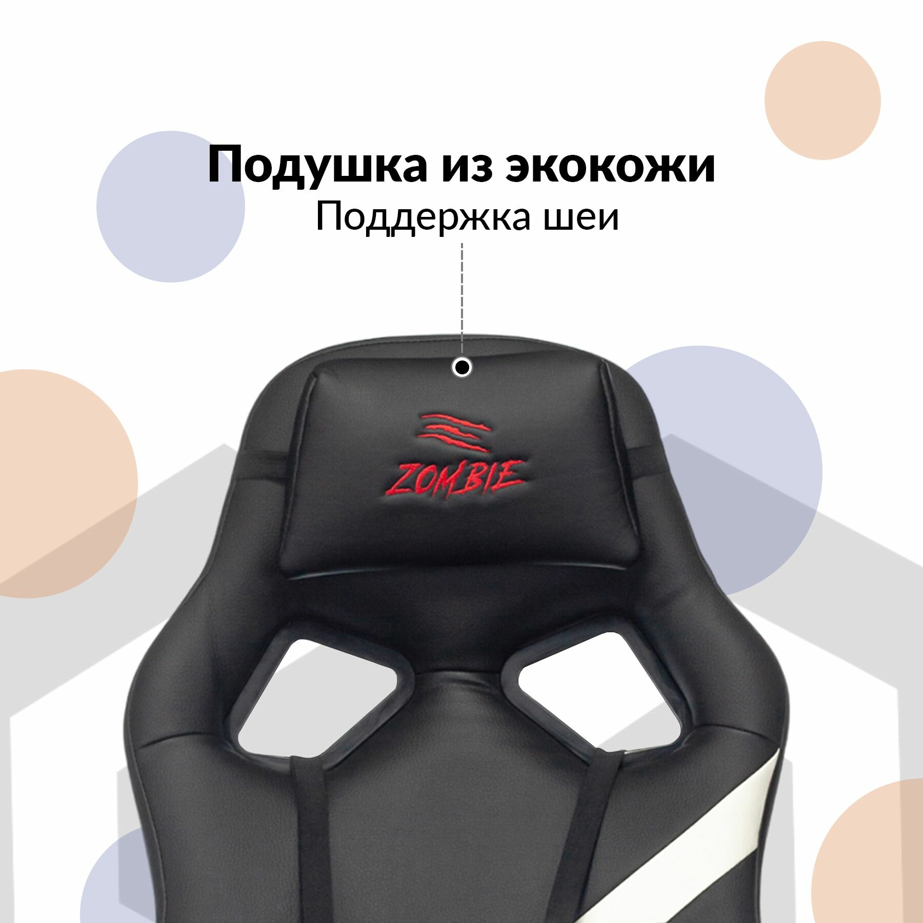 Кресло компьютерное игровое Zombie, экокожа, черное, красное, крестовина пластик - Кресло геймерское, с подголовником