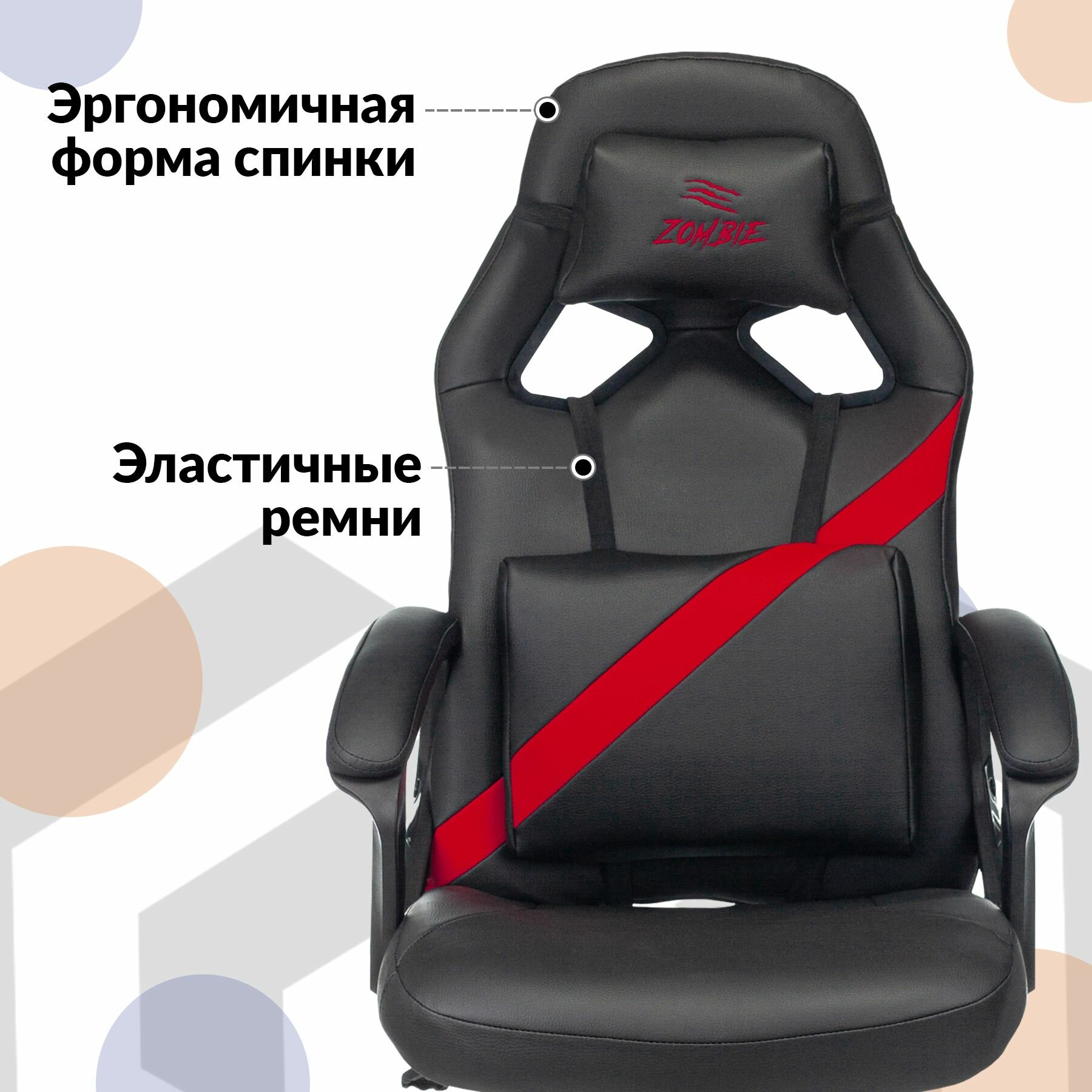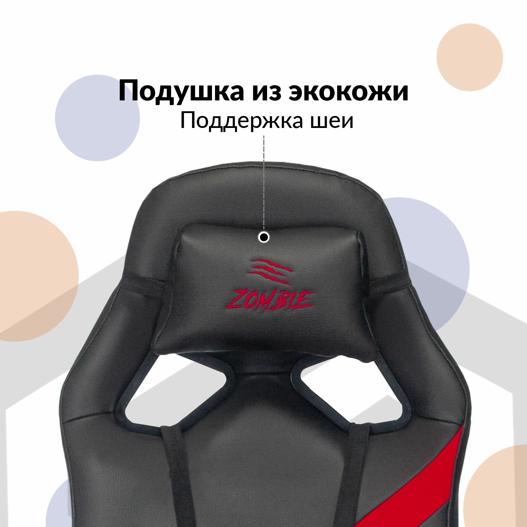 Кресло компьютерное игровое Zombie, экокожа, черное, красное, крестовина пластик - Кресло геймерское, с подголовником