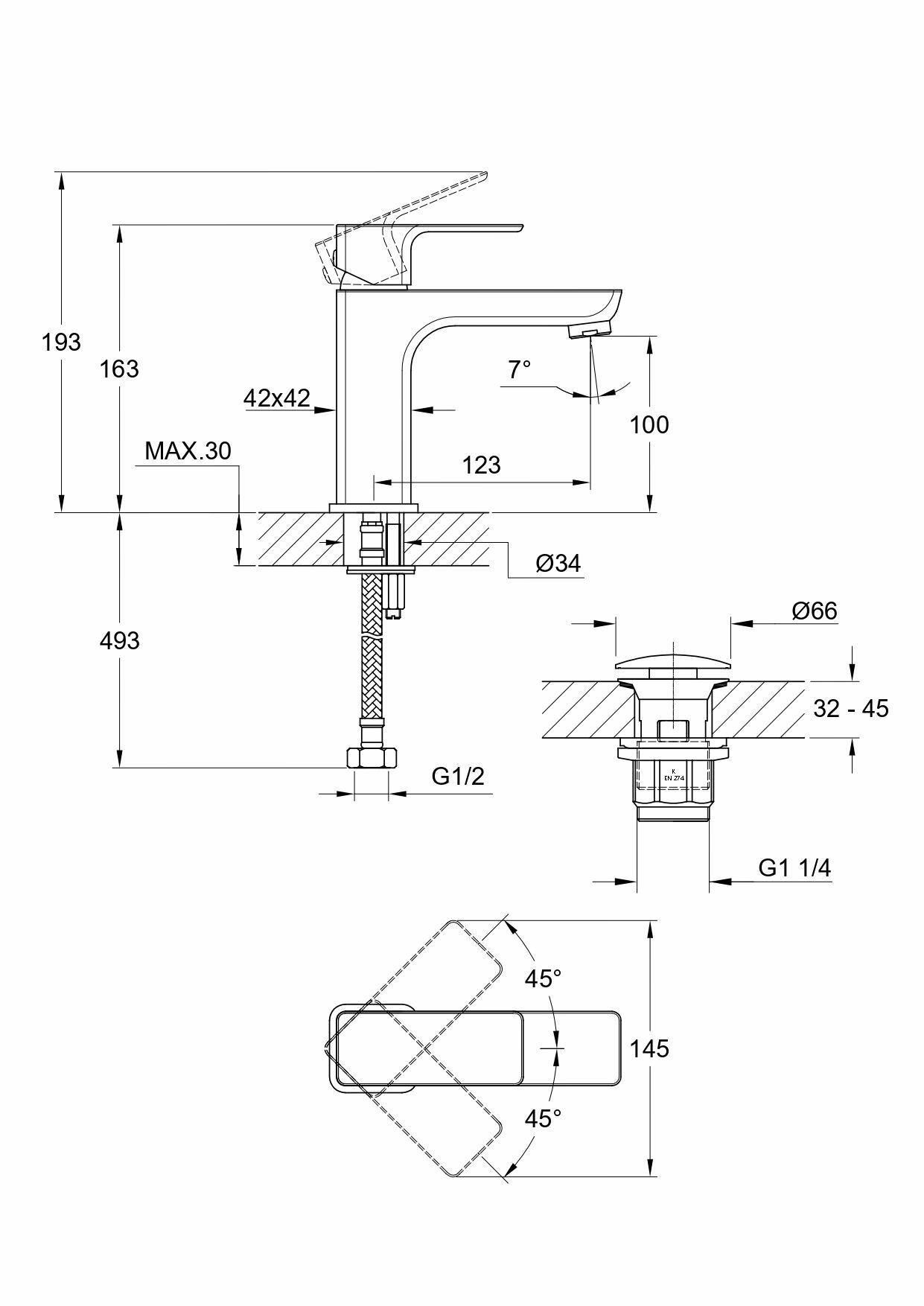 Смеситель для раковины GEO, сливной гарнитур, A63039