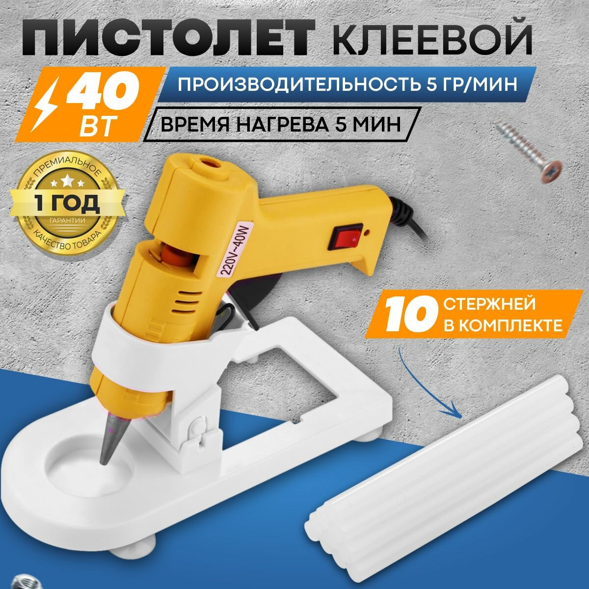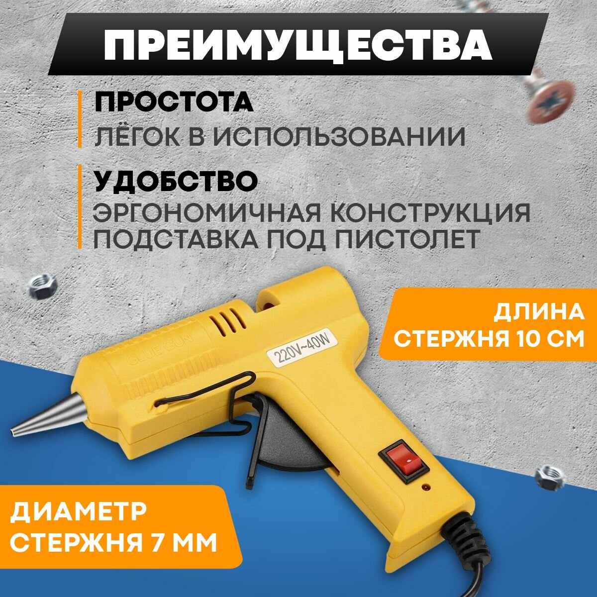 Термопистолет клеевой Deko DKGG40 40Вт SET4 с подставкой набор клеевых стержней (10 шт, 7 мм) желтый .