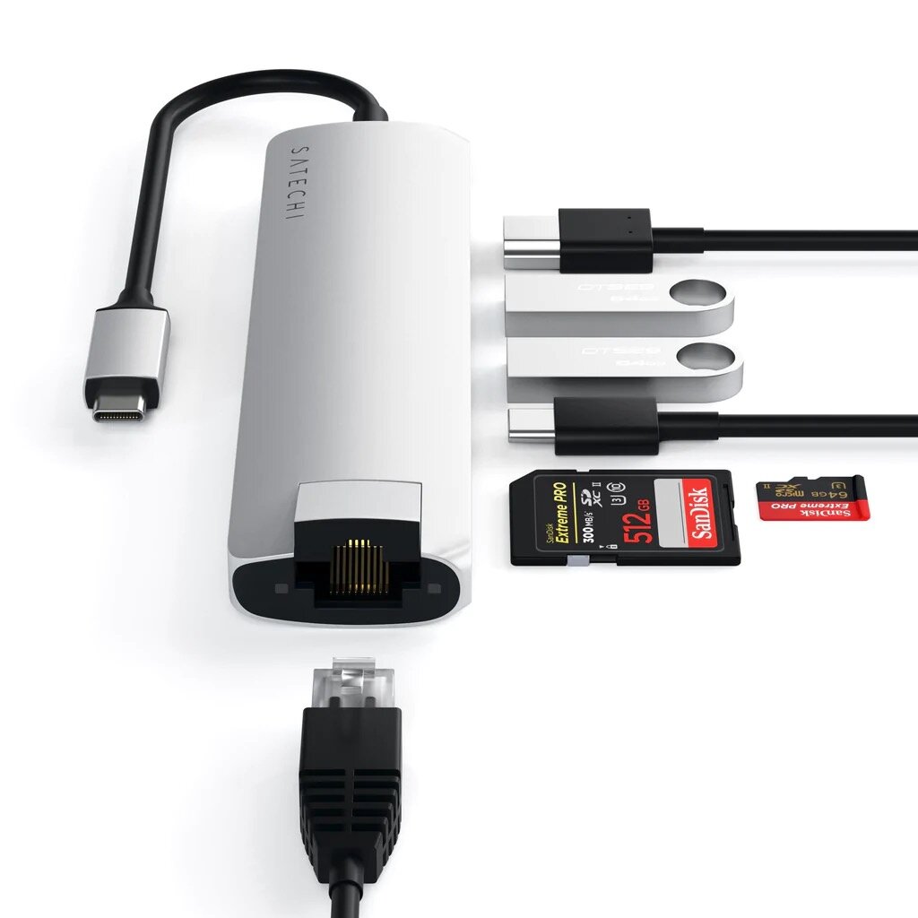 Адаптер Satechi USB-C Slim Multi-Port with Ethernet Adapter Silver