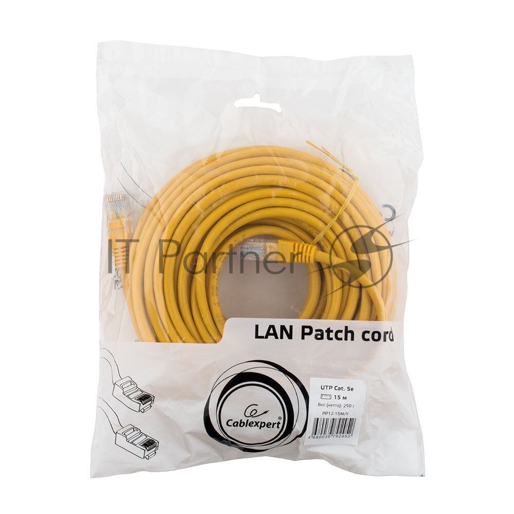 Купить Патч-корд UTP Cablexpert жёлтый категории 5e длина 15 метров PP12-15M/Y