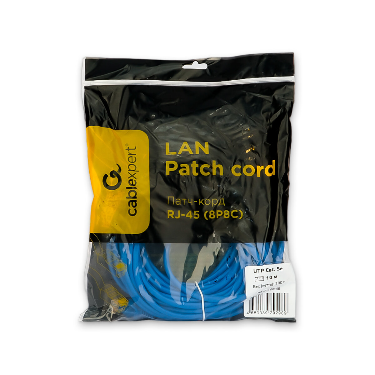 Патч-Корд Utp4, Cat5E, 10М, Литой Gembird Pp12E-10M (арт. 241304)