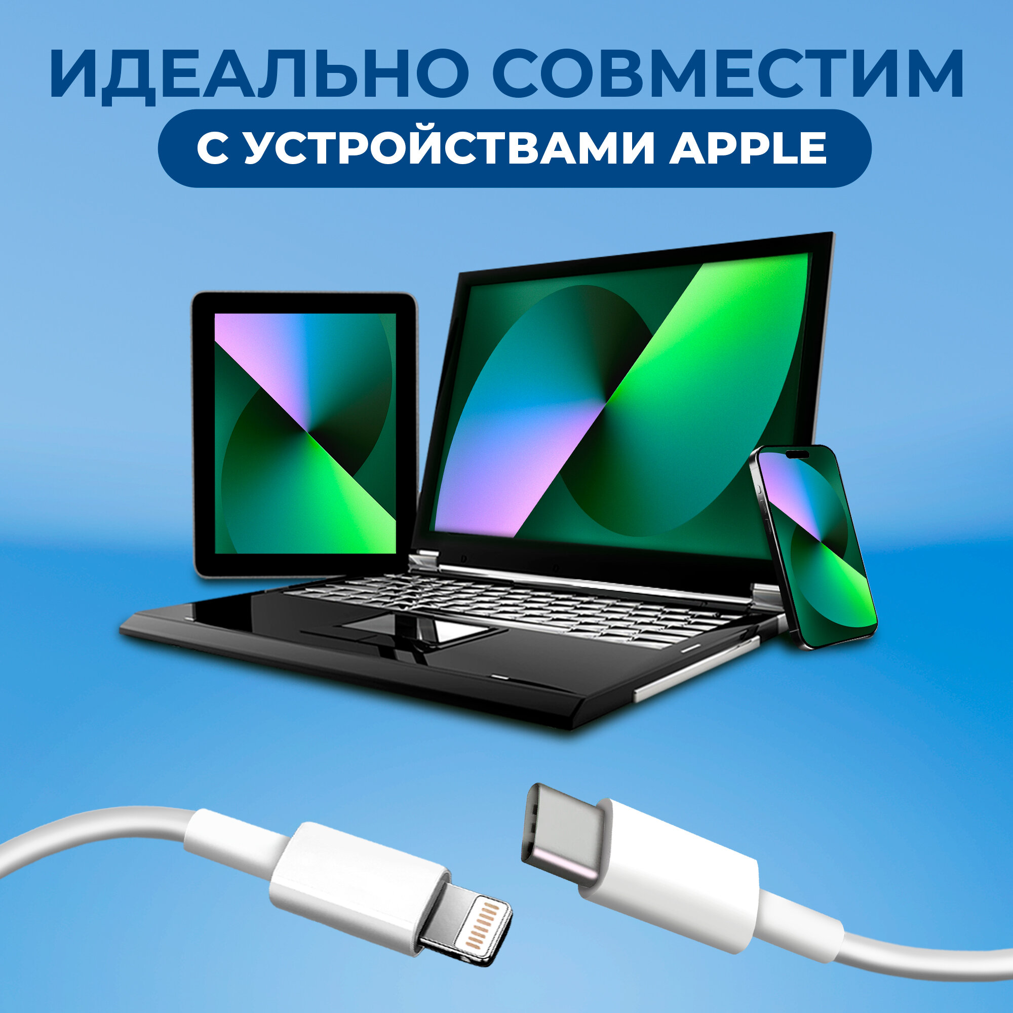 Кабель USB Type-C - Lightning WALKER С830 для Apple Iphone, быстрый заряд, 20W, белый /зарядное устройство на телефона, шнур питания, провод на айфон
