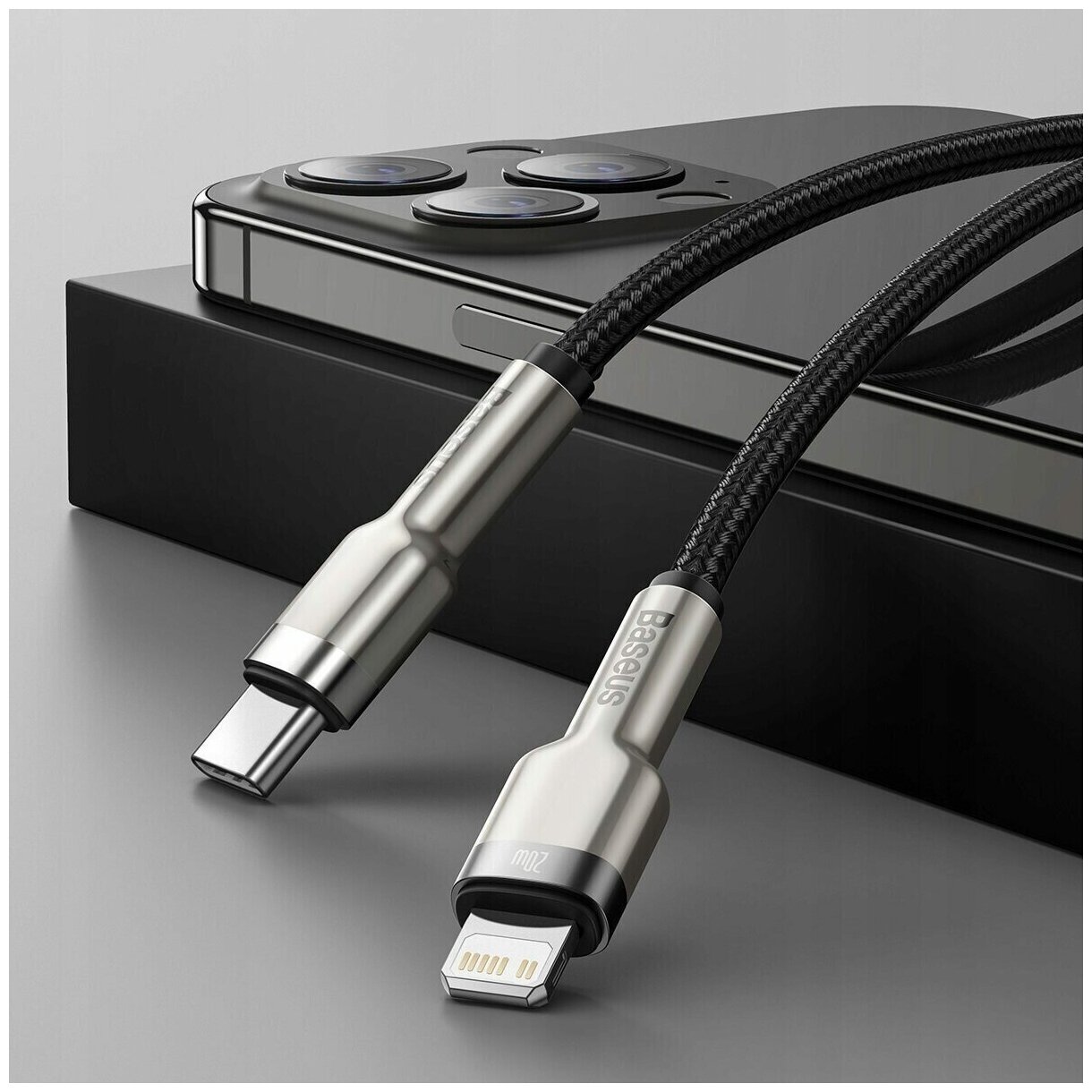 Кабель USB-C BASEUS Cafule Series Metal, Type-C - Lightning, 20W, 25 см, черный