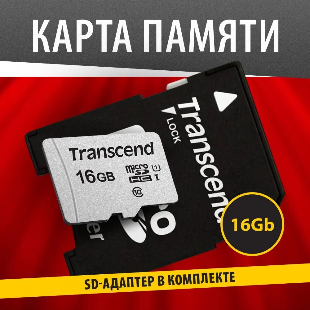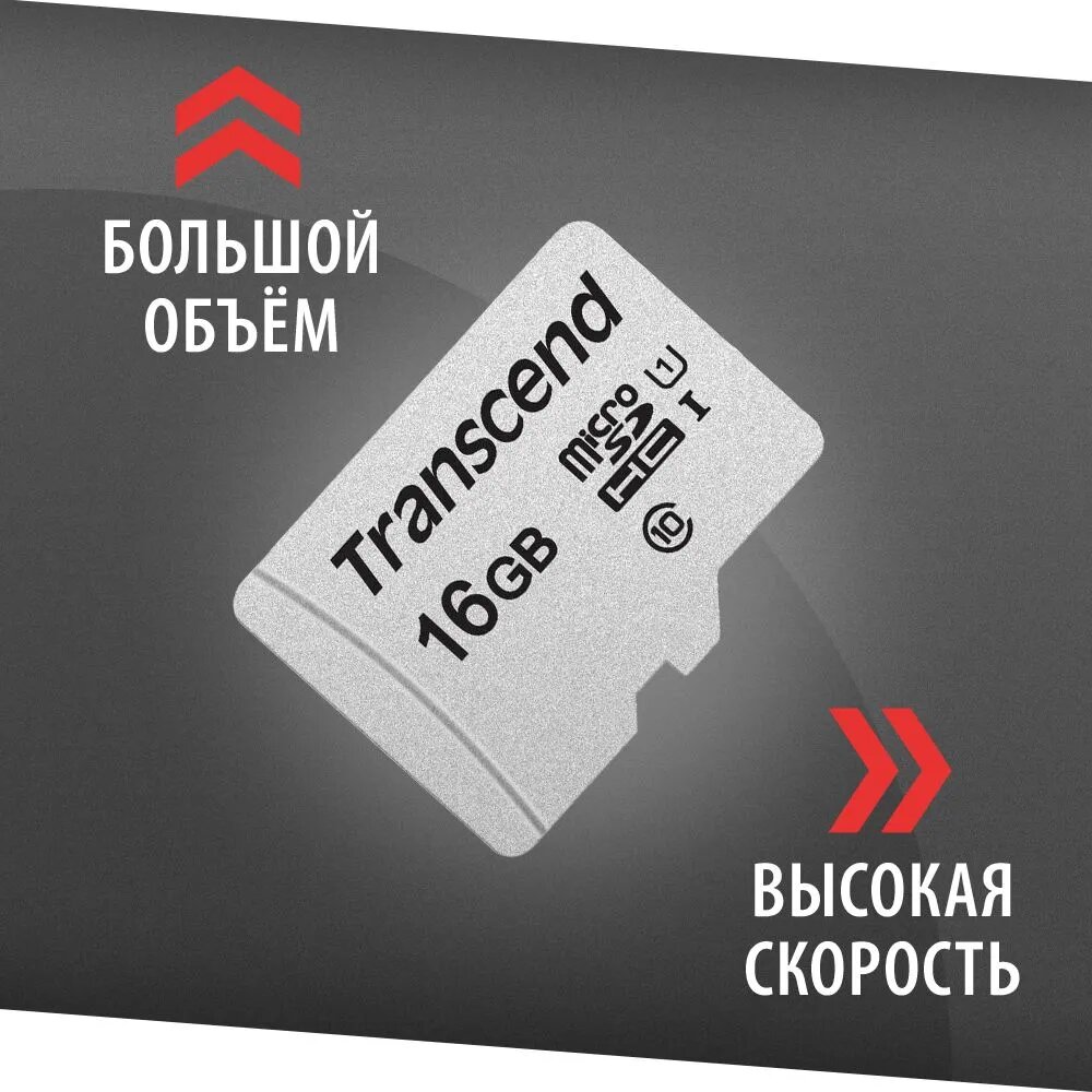 Карта памяти microSD 16 ГБ Transcend Class 10 300S