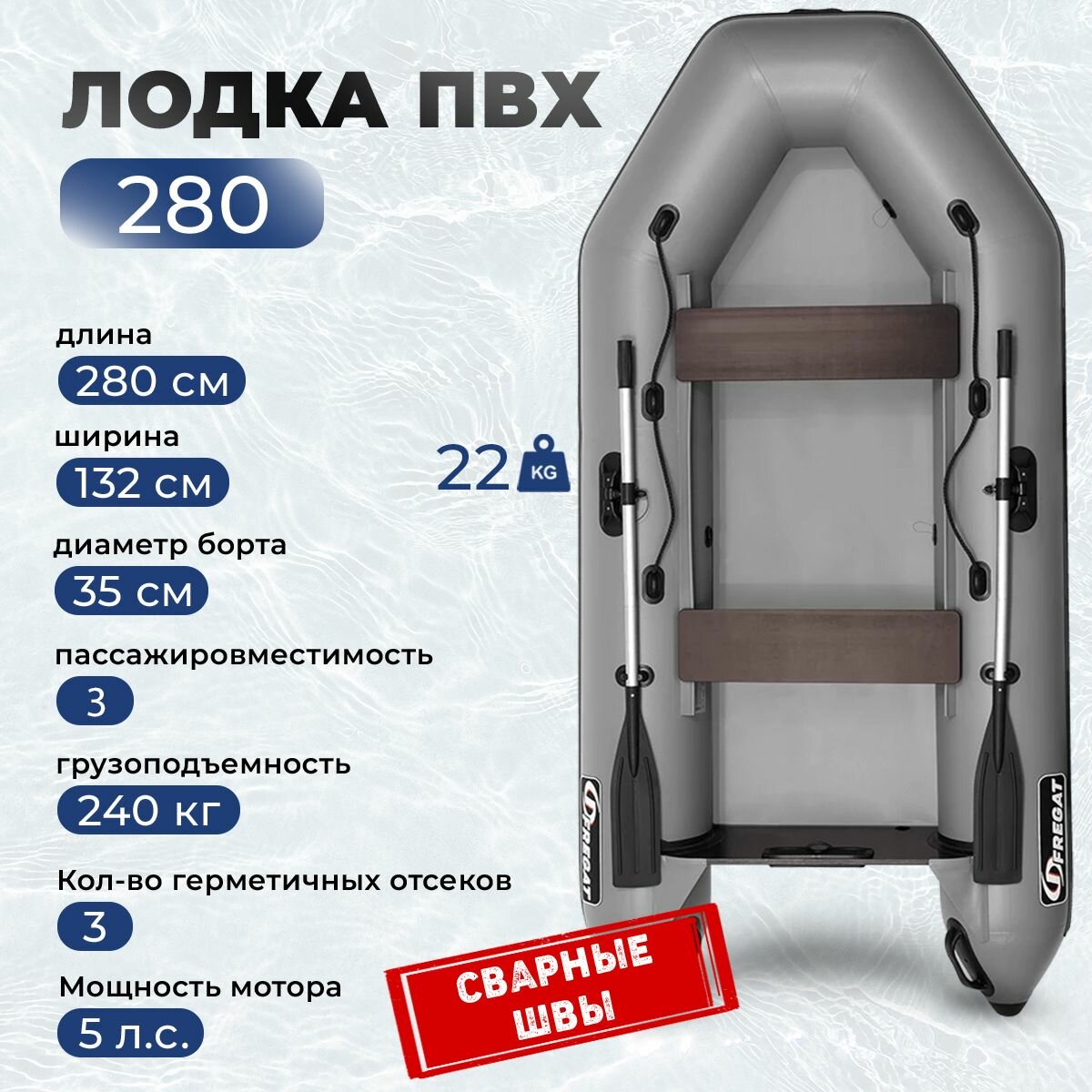 Лодка надувная ПВХ под мотор Фрегат 280 Е Серый интересное: