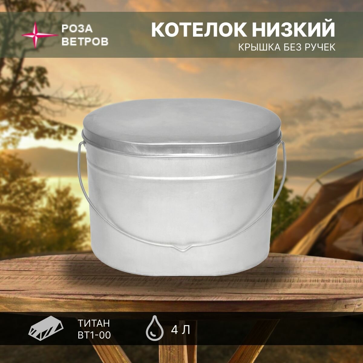 Котелок низкий 4л титан Роза Ветров интересное: