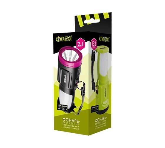 Фонарь ручной ФАZА AccuF8-L1W/L24-bk, солнечная панель, черный