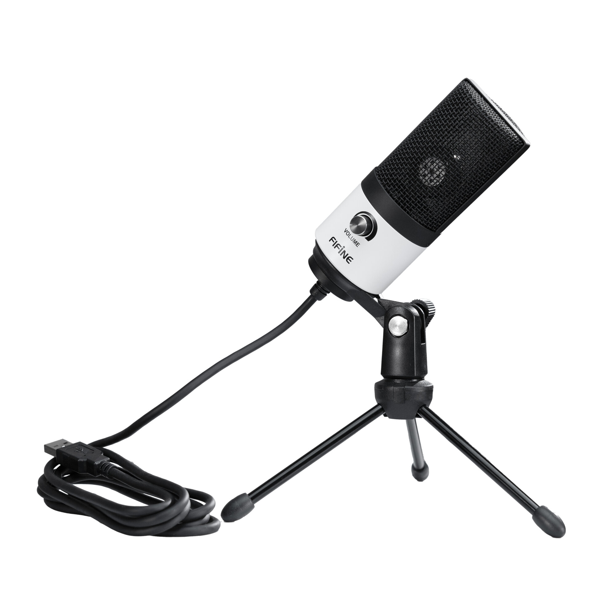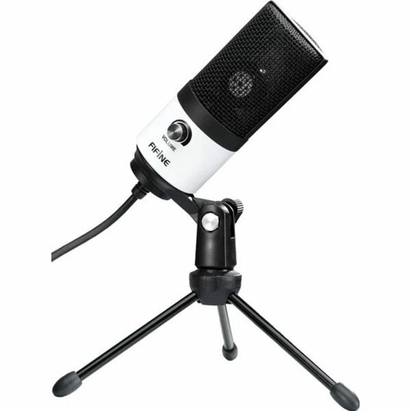 Микрофон FIFINE K669 (чёрный, на штативе, USB 5V, 20Hz-20kHz, -34dB±30% (1kHz), S/N 78dB, шнур 1.8 м, рег. громкости)