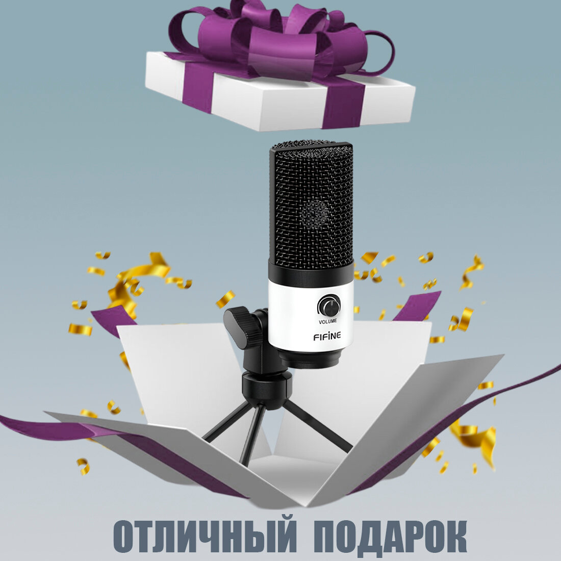 СохранитьПроводной микрофон Fifine K669, белый, настольный, конденсаторный, USB интересное: