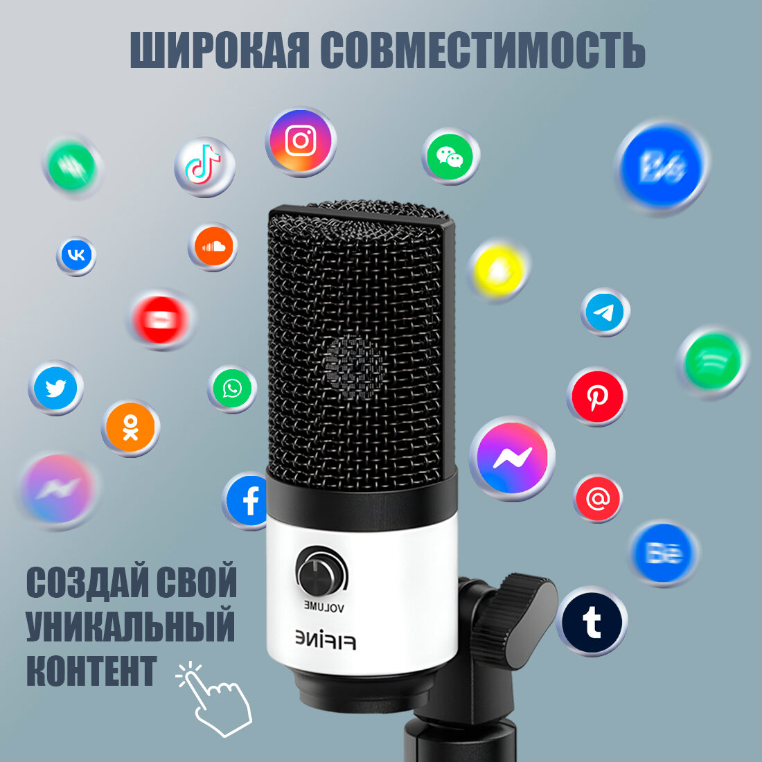 Купить Проводной микрофон Fifine K669, белый, настольный, конденсаторный, USB
