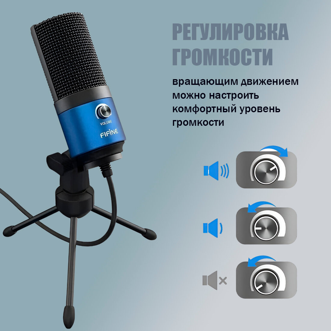 СохранитьМикрофон проводной Fifine K669, USB-A, синий интересное: