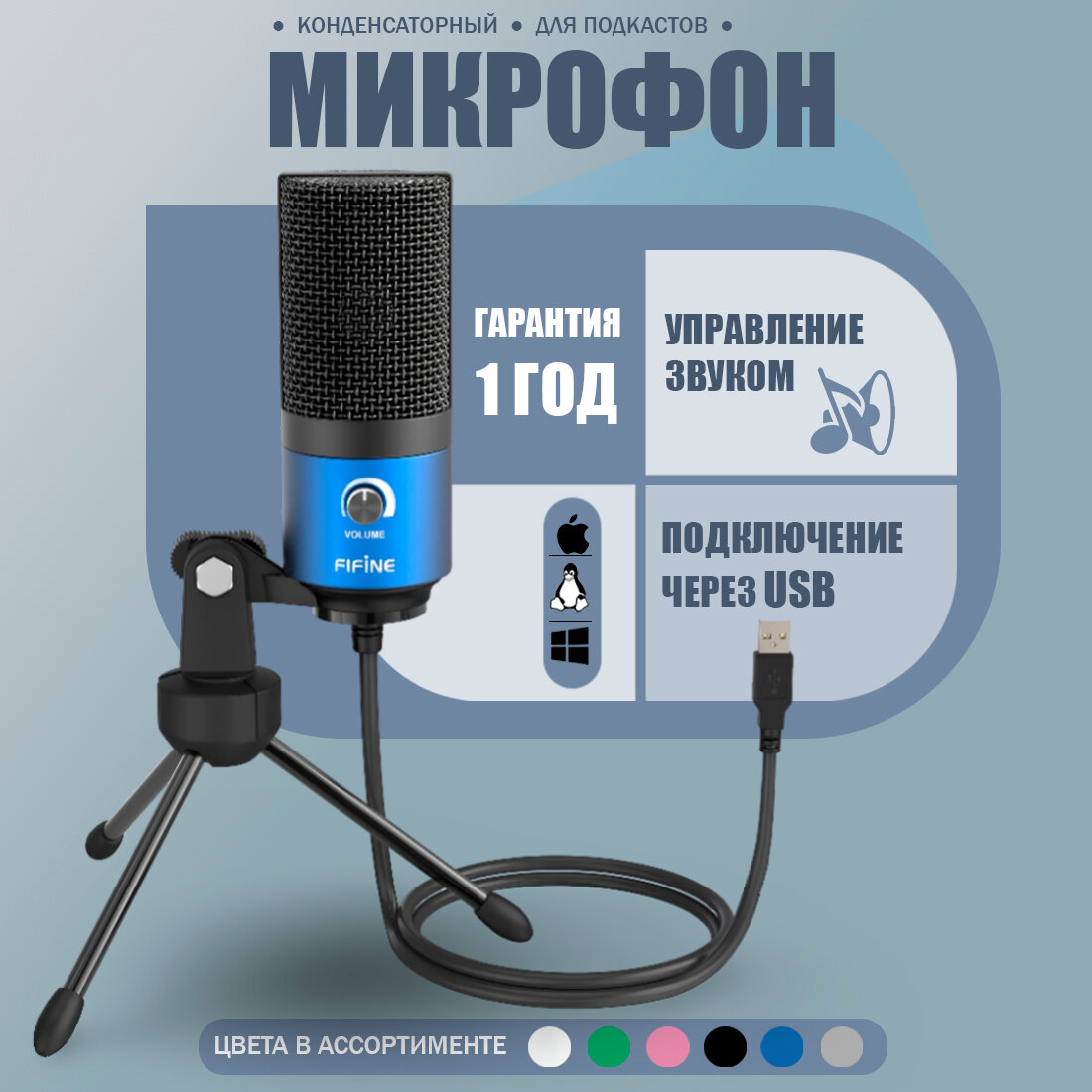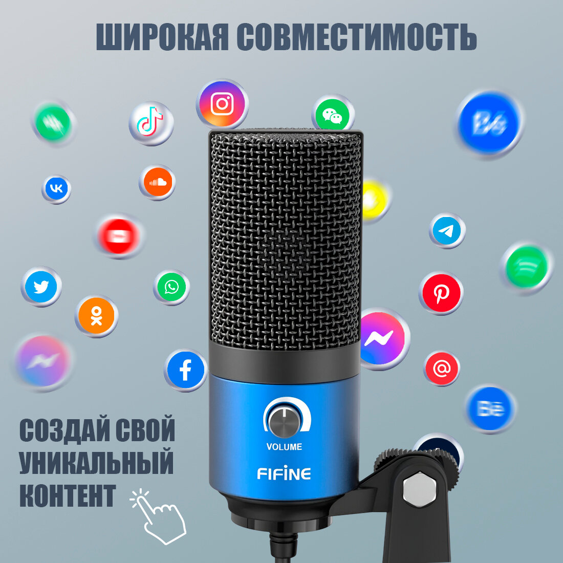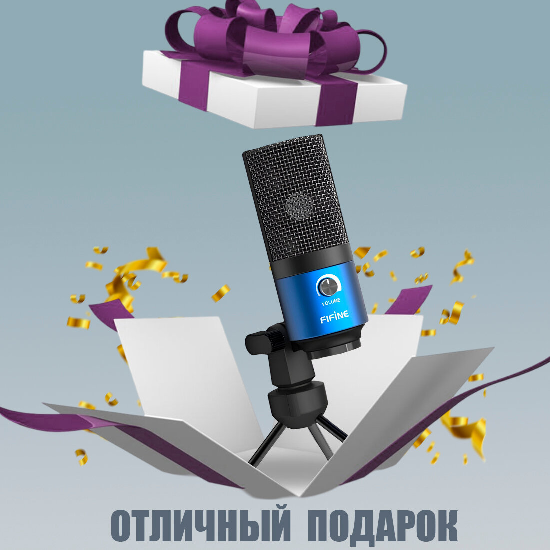 Конденсаторный студийный USB-микрофон Fifine K669 (компьютерный, игровой, для стримов, для конференций, Blue)