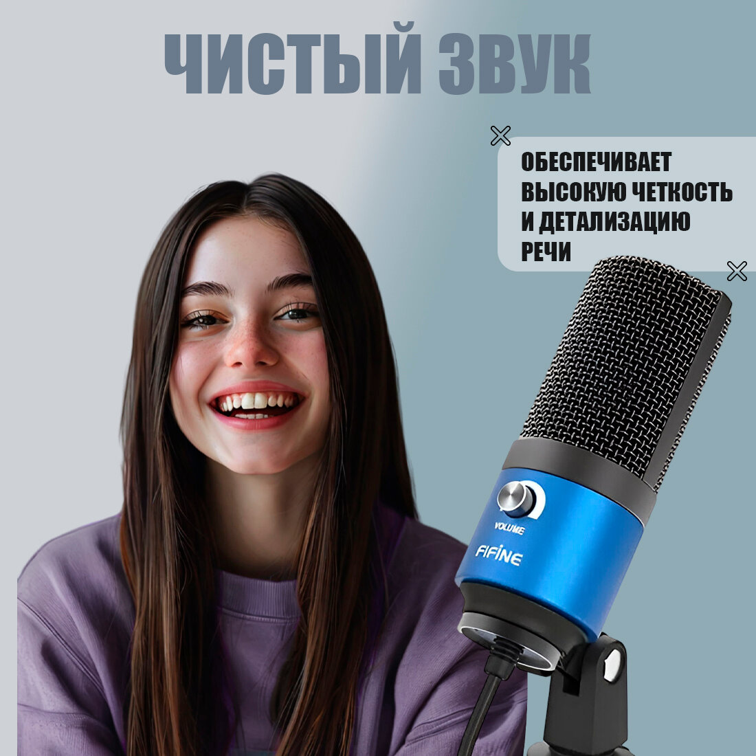 Конденсаторный микрофон для компьютера Fifine K669B, синий