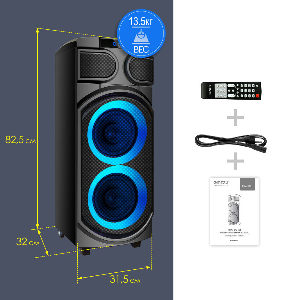 Переносная Bluetooth MIDI-система Ginzzu GM-203, черного цвета интересное: