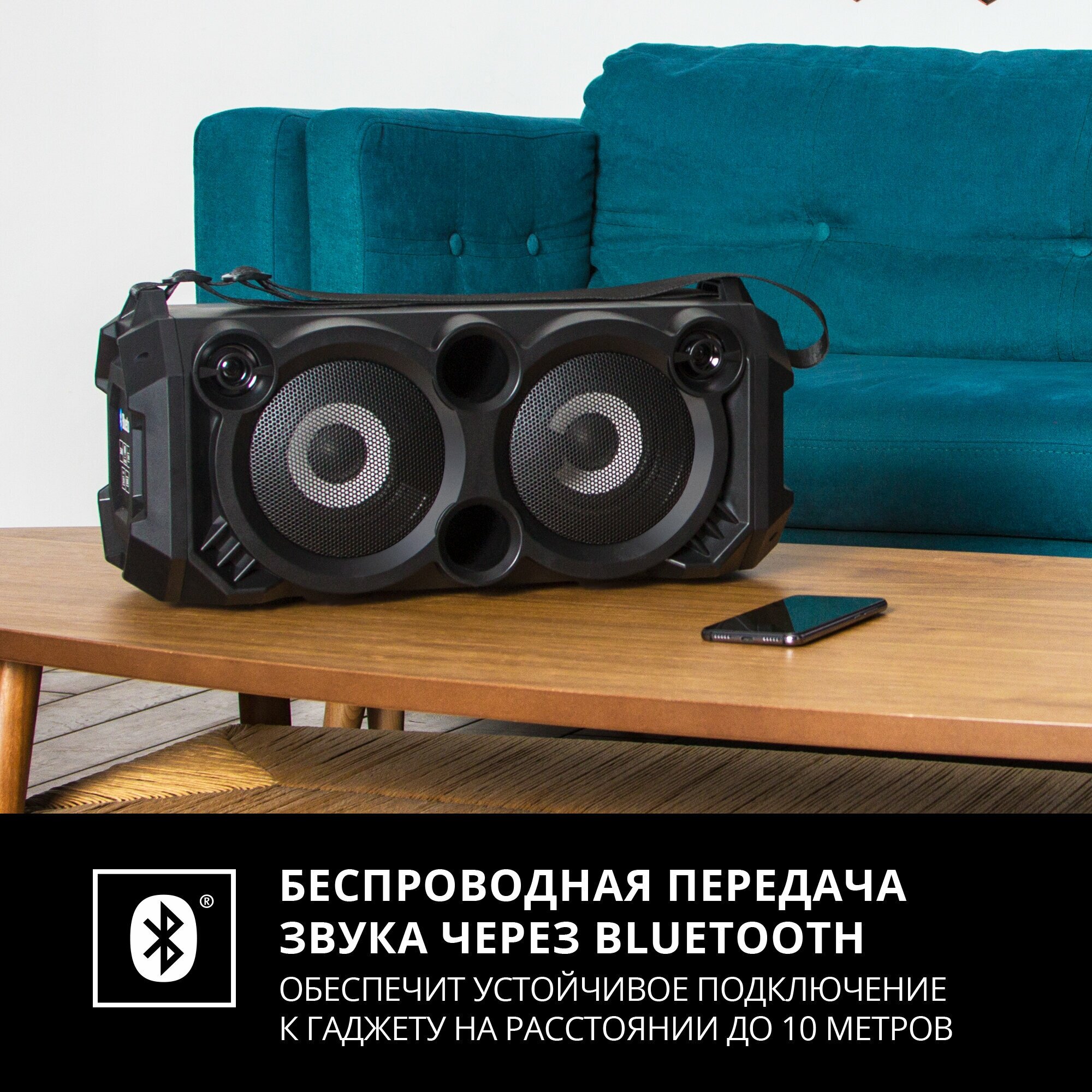 | Плюсы: | Цена, форм-фактор, АЧХ, вариативность источников звука, подсветка ( она есть :), автономность, караоке |