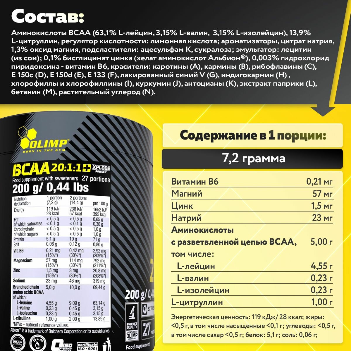 Olimp BCAA 20:1:1 Xplode Powder - 200 грамм, кола (27 порций)