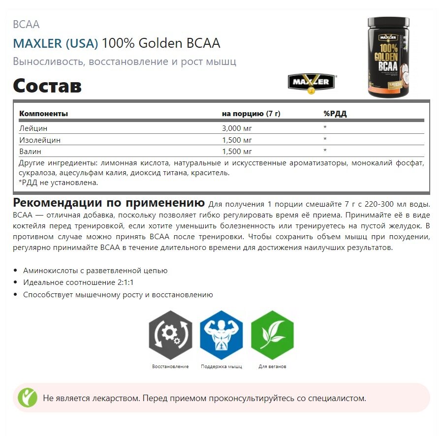 Купить Maxler Аминокислоты БЦАА 100% Golden BCAA "Кокосовая вода" (420 гр)