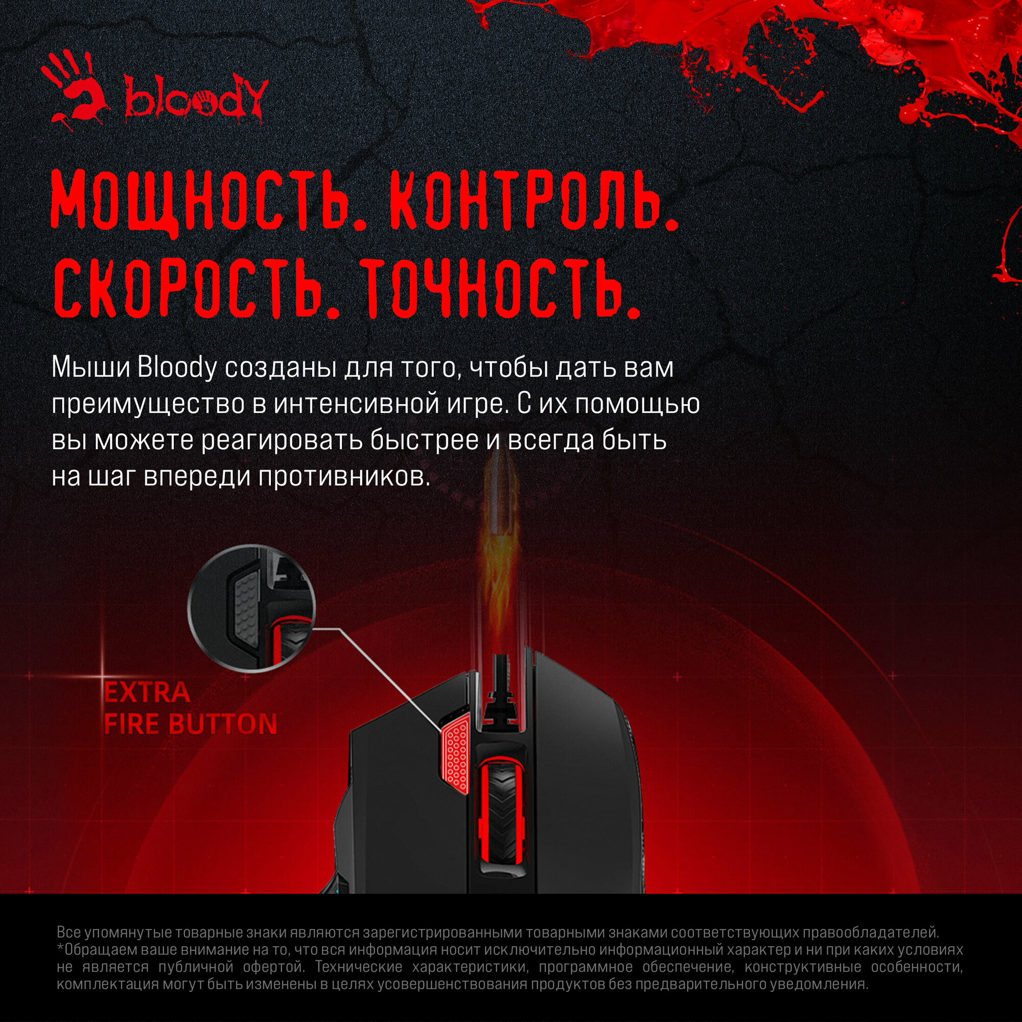 Мышь A4TECH Bloody J95s, игровая, оптическая, проводная, USB, черный [j95s stone black activated]