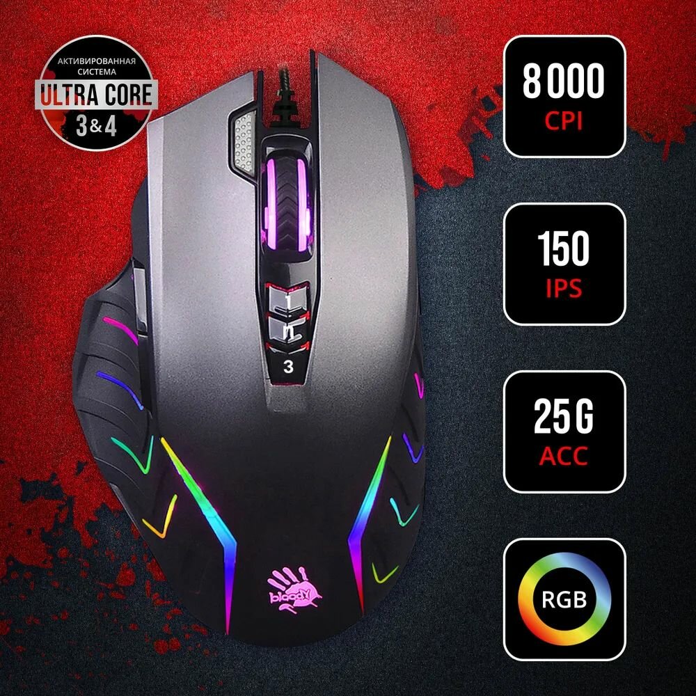 Мышь A4Tech Bloody J95s черный оптическая (8000dpi) USB (9but) J95s Stone Black Activated .