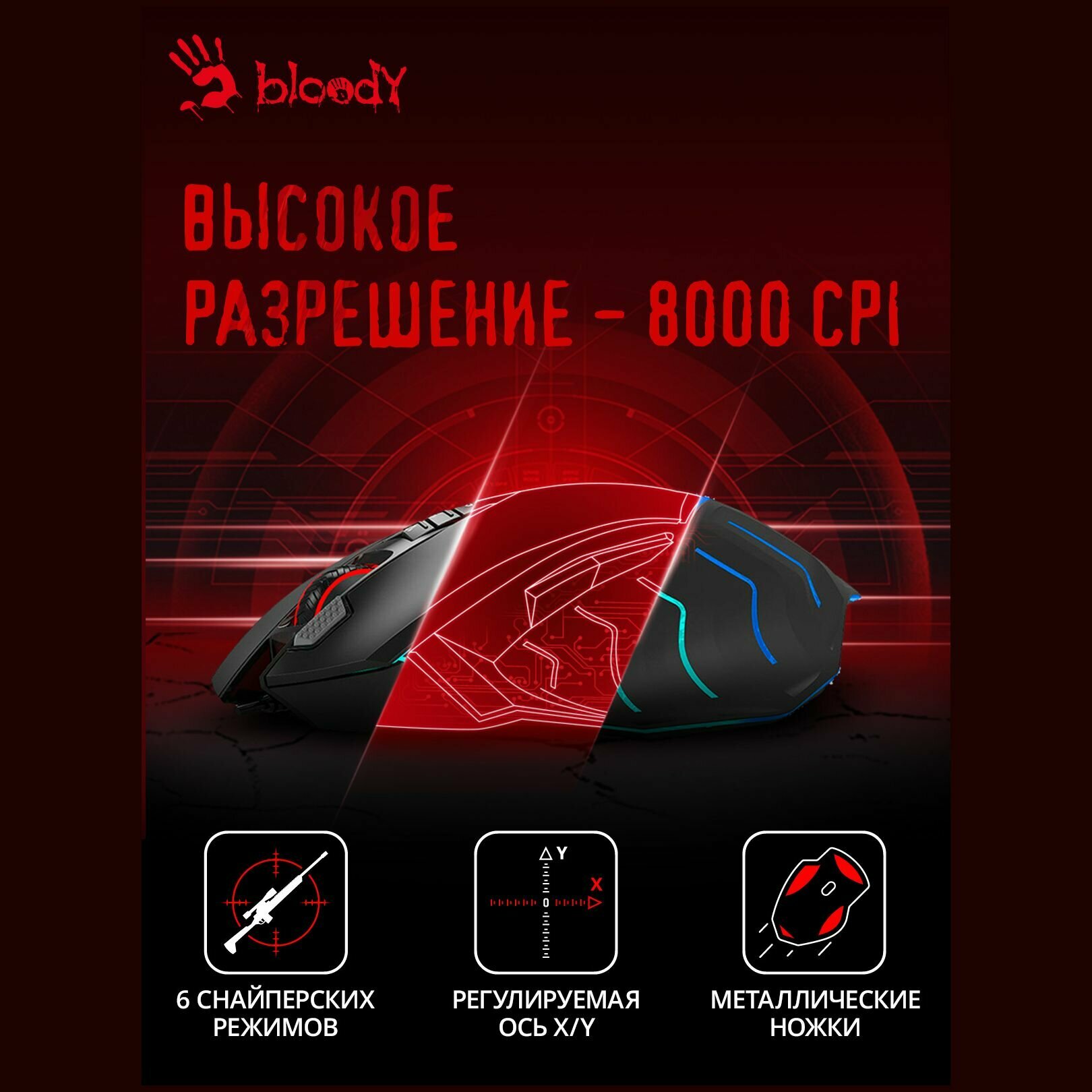 Мышь A4Tech Bloody J95s черный оптическая (8000dpi) USB (9but)