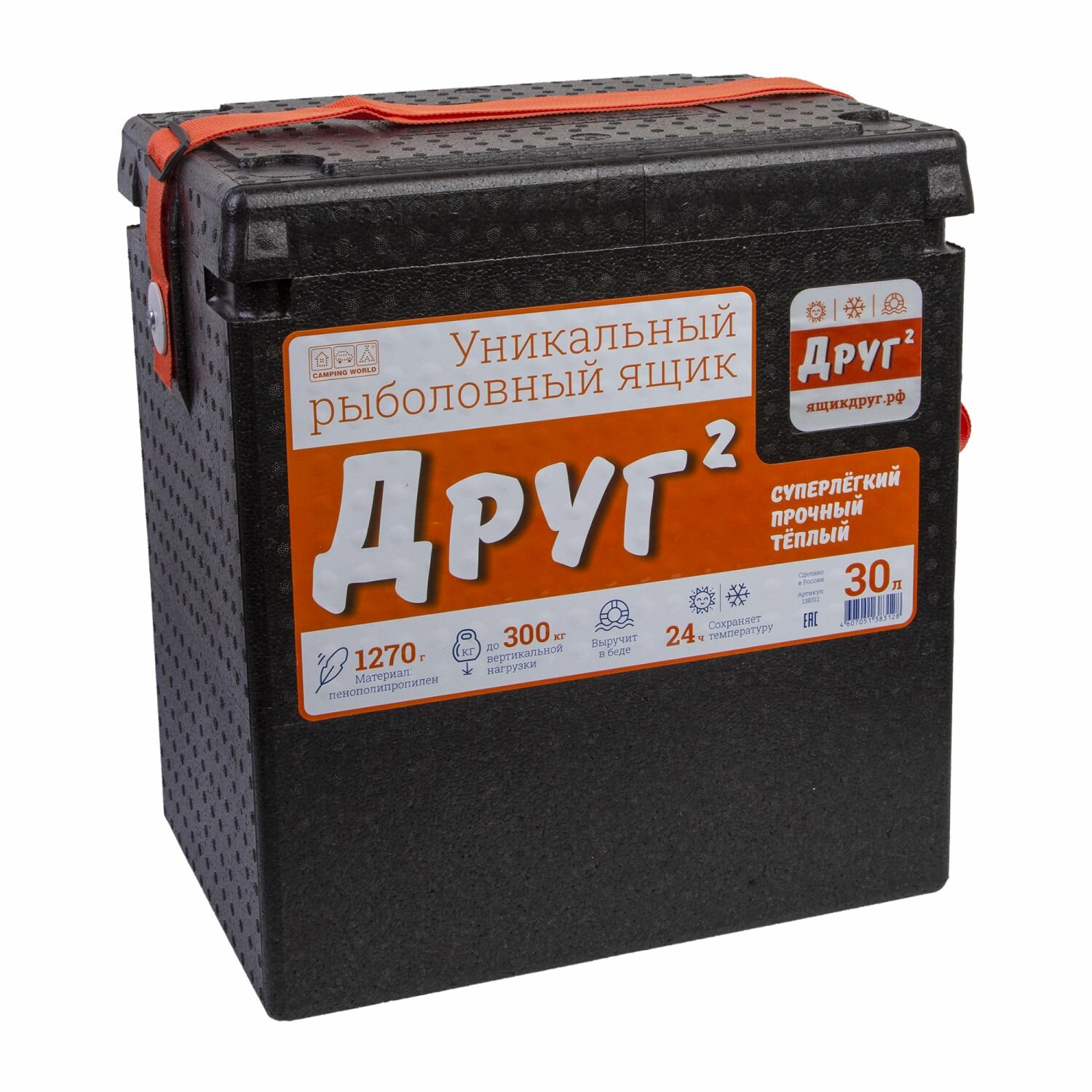 Ящик рыболовный Camping World "Друг-2" 30л (чёрный, в комплекте держатель крышки)