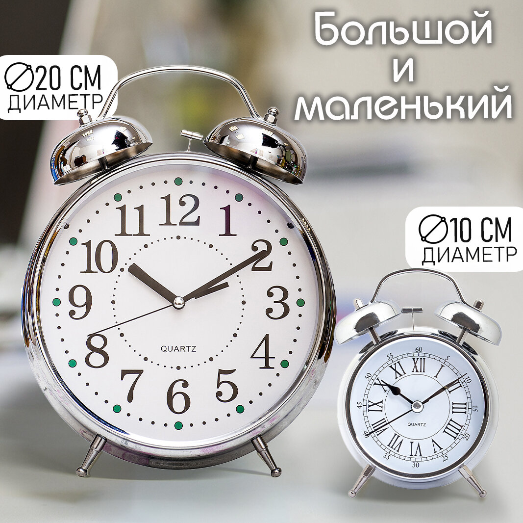 Купить Часы Будильник гигант никелированные с подсветкой Эврика, часы настольные большие, подарочные