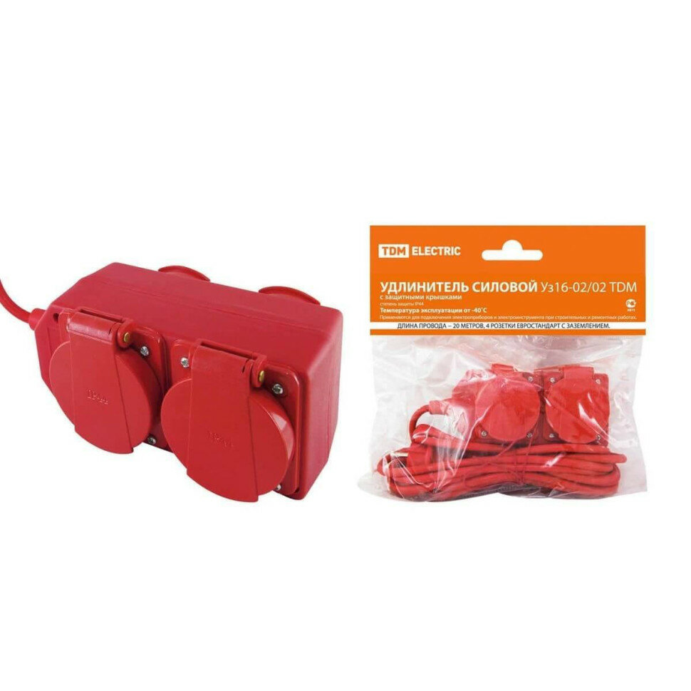Удлинитель силовой Tdm Electric Уз16-02/02 (с крышками IP44, 4 места/20м КГ3х1,5), SQ1302-0022