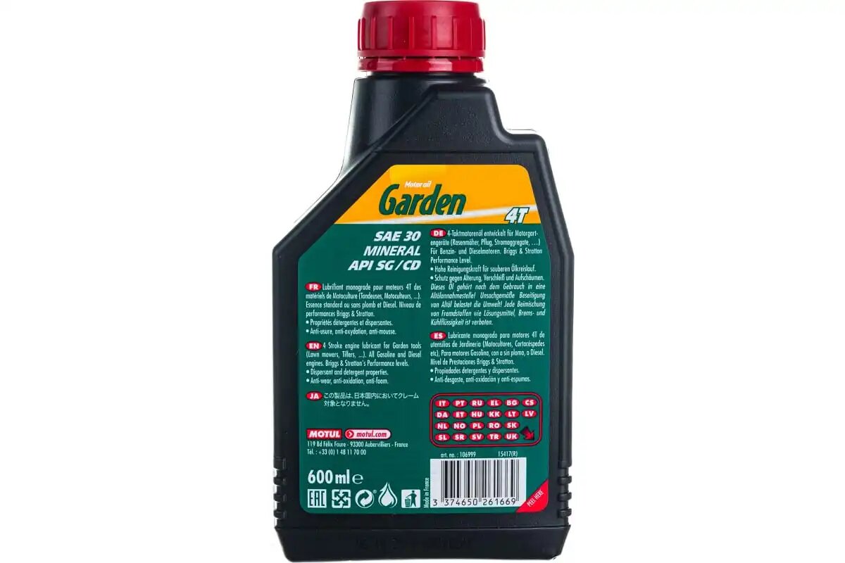 Масло Моторное Motul Garden 4Т Sae30 Минеральное 0.6 Л 106999 MOTUL арт. 106999