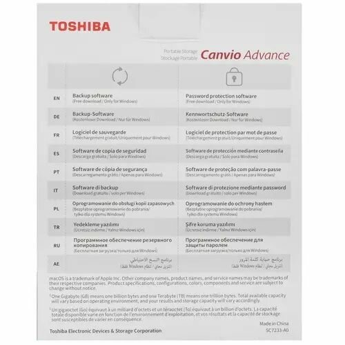 Внешний жесткий диск Toshiba Canvio Advance 2Tb (HDTCA20EK3AA), 1272378