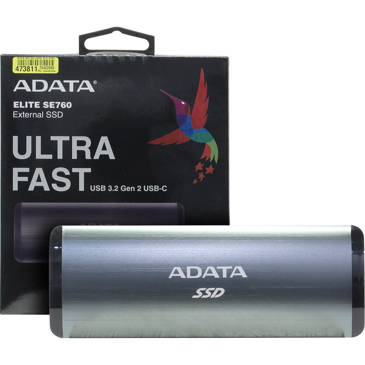 512 ГБ Внешний SSD ADATA SE760, USB 3.2 Gen 2 Type-C, титановый серый