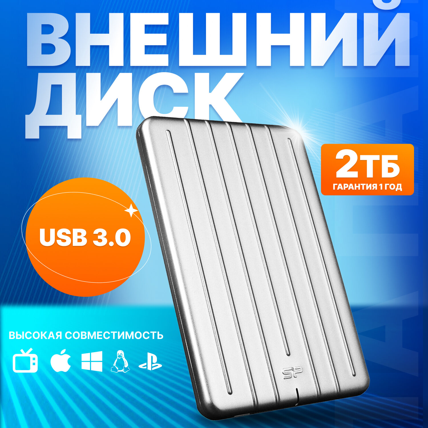 Портативный HDD Silicon Power Armor A75 2 TB USB 3.2, серебристый, алюминий