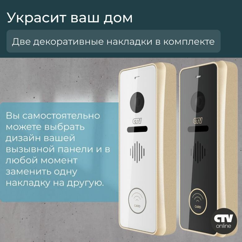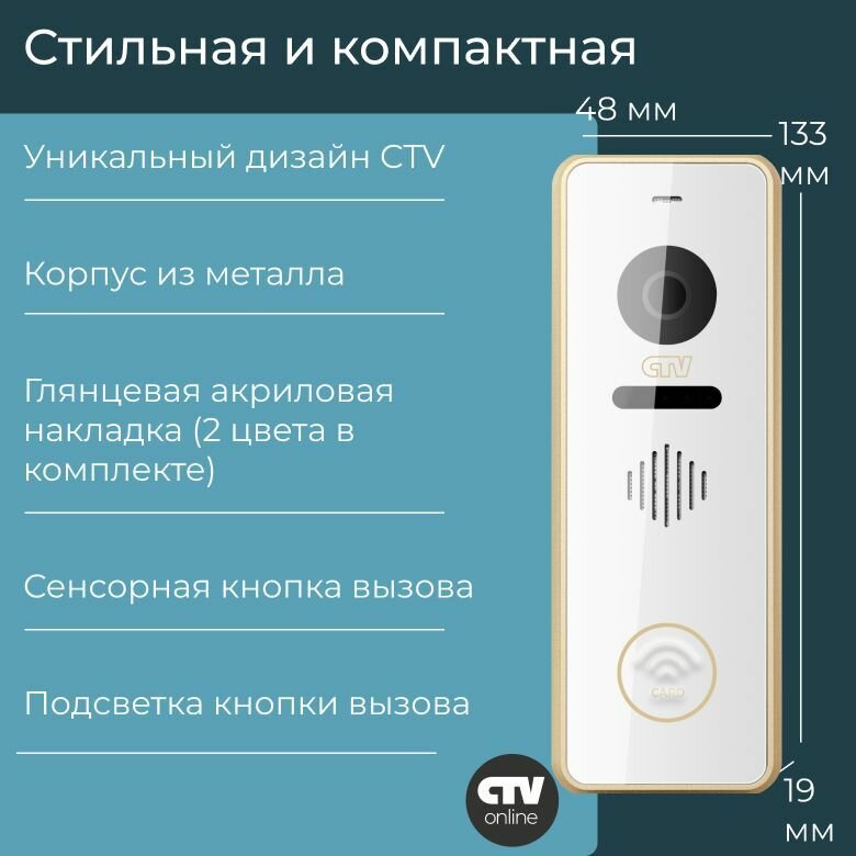 CTV-D4002EM (Шампань) Сенсорная вызывная панель видеодомофона, камера 2Mp FULL HD, 115 градусов, Встроенный контроллер-считыватель, ИК-подсветка, БУЗ в комплекте, Антивандальная, -30...+50С