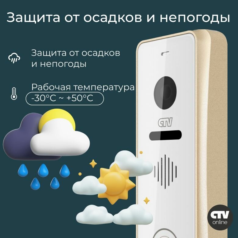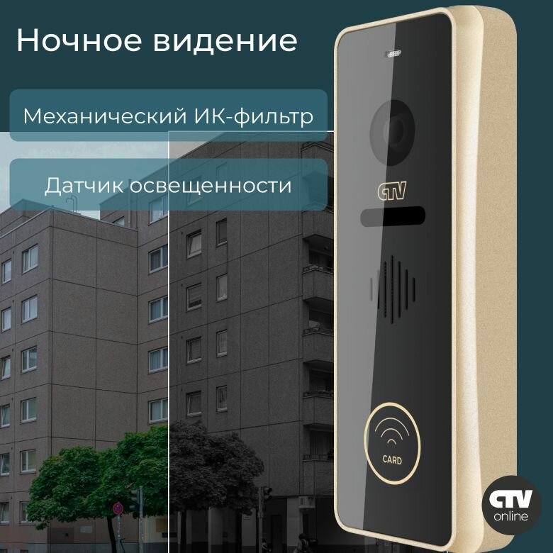 Вызывная панель видеодомофона CTV-D4002EM (Шампань), Видеокамера 2Mp FULL HD, обзор 115 градусов. ИК-подсветка. БУЗ. Антивандальный корпус, -40...+50С, встроенный контроллер-считыватель