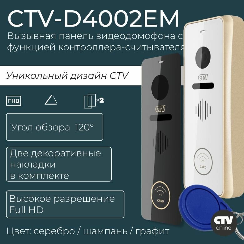 Вызывная панель домофона CTV-D4002EM - Серебро - 2Мп, встроенный считыватель/контроллер карт доступа Em-Marine - Реле
