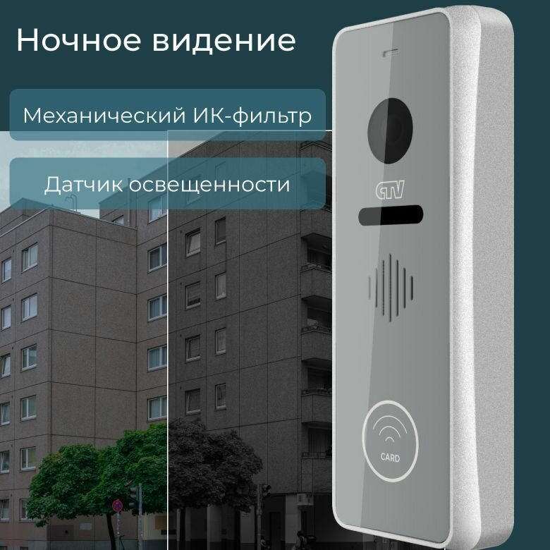 CTV-D4002EM (Серебро) Сенсорная вызывная панель видеодомофона, камера 2Mp FULL HD, 115 градусов, Встроенный контроллер-считыватель, ИК-подсветка, БУЗ в комплекте, Антивандальная, -30...+50С