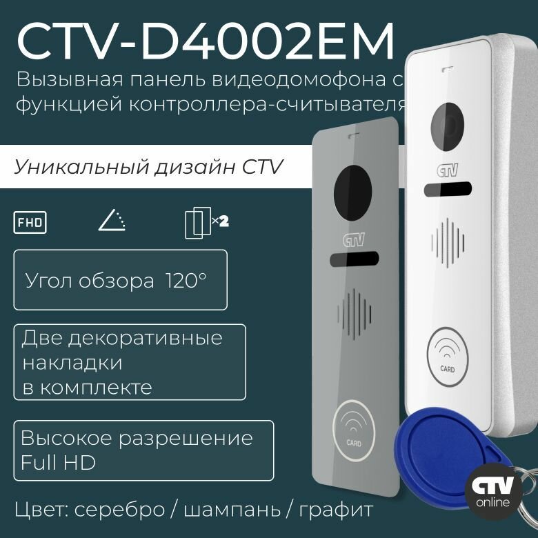 Вызывная панель домофона CTV-D4002EM - Серебро - 2Мп, встроенный считыватель/контроллер карт доступа Em-Marine - Реле