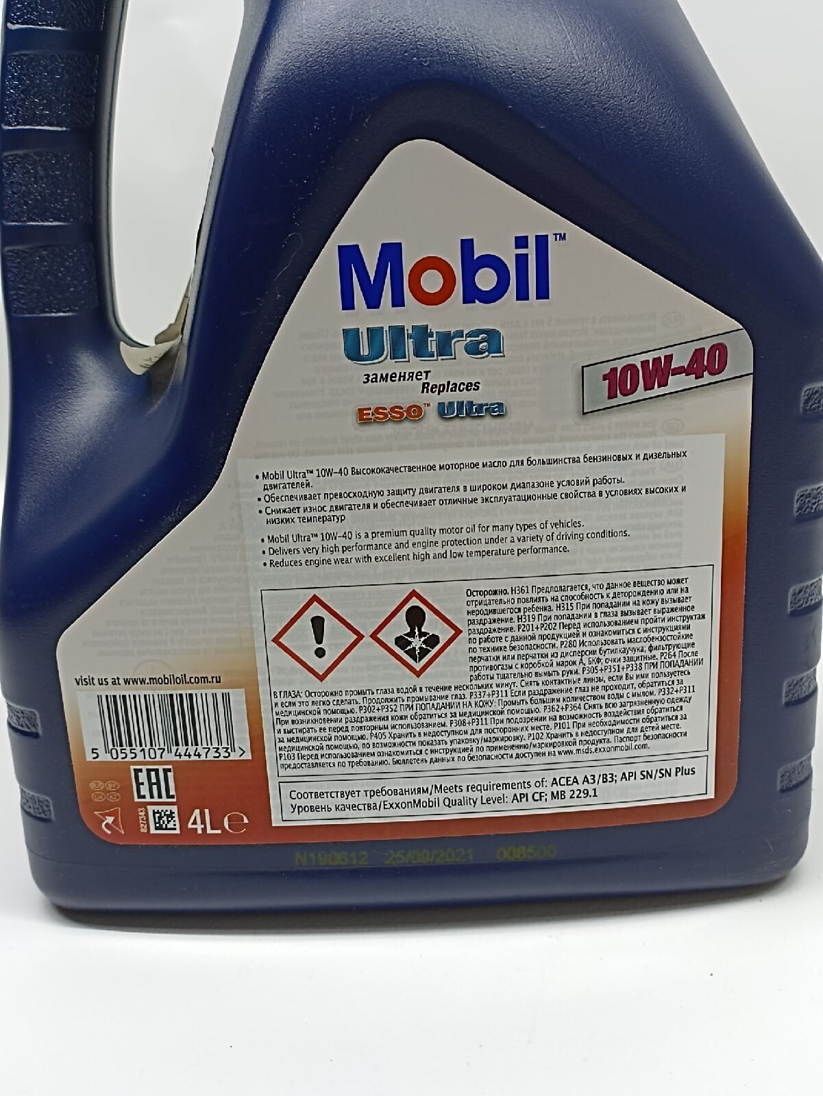 MOBIL Ultra 10W40 SL/CF, A3/B3 полусинтетика 4л (1/4)