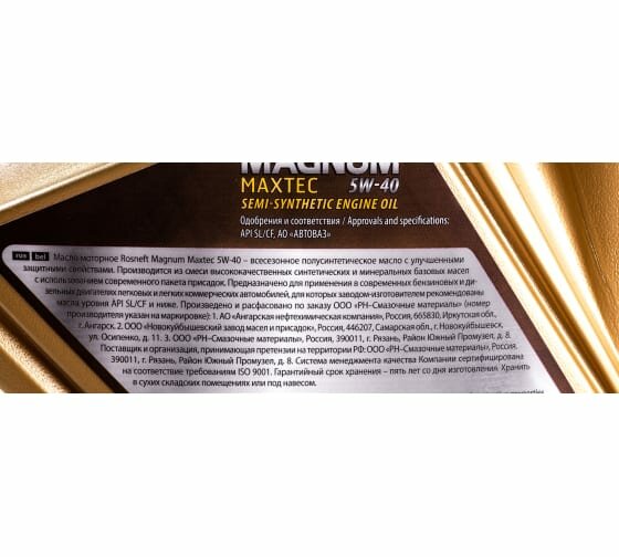 Масло моторное Роснефть RN Magnum Maxtec 5w-40 (5 л) полусинтетическое SL/CF