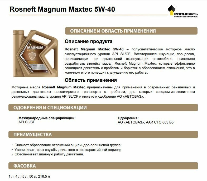 Ниже Вы можете прочитать отзывы на Rosneft Масло Моторное Роснефть Magnum Maxtec 5W-40 4Л., ознакомится с подробными характеристиками, посмотреть интересные обзоры и фотографии на Rosneft Масло Моторное Роснефть Magnum Maxtec 5W-40 4Л..