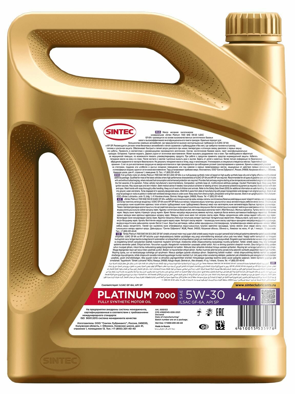Platinum 7000 5W30 масло моторное синт. 4л. Gf-6A Sintec (600153) 600286