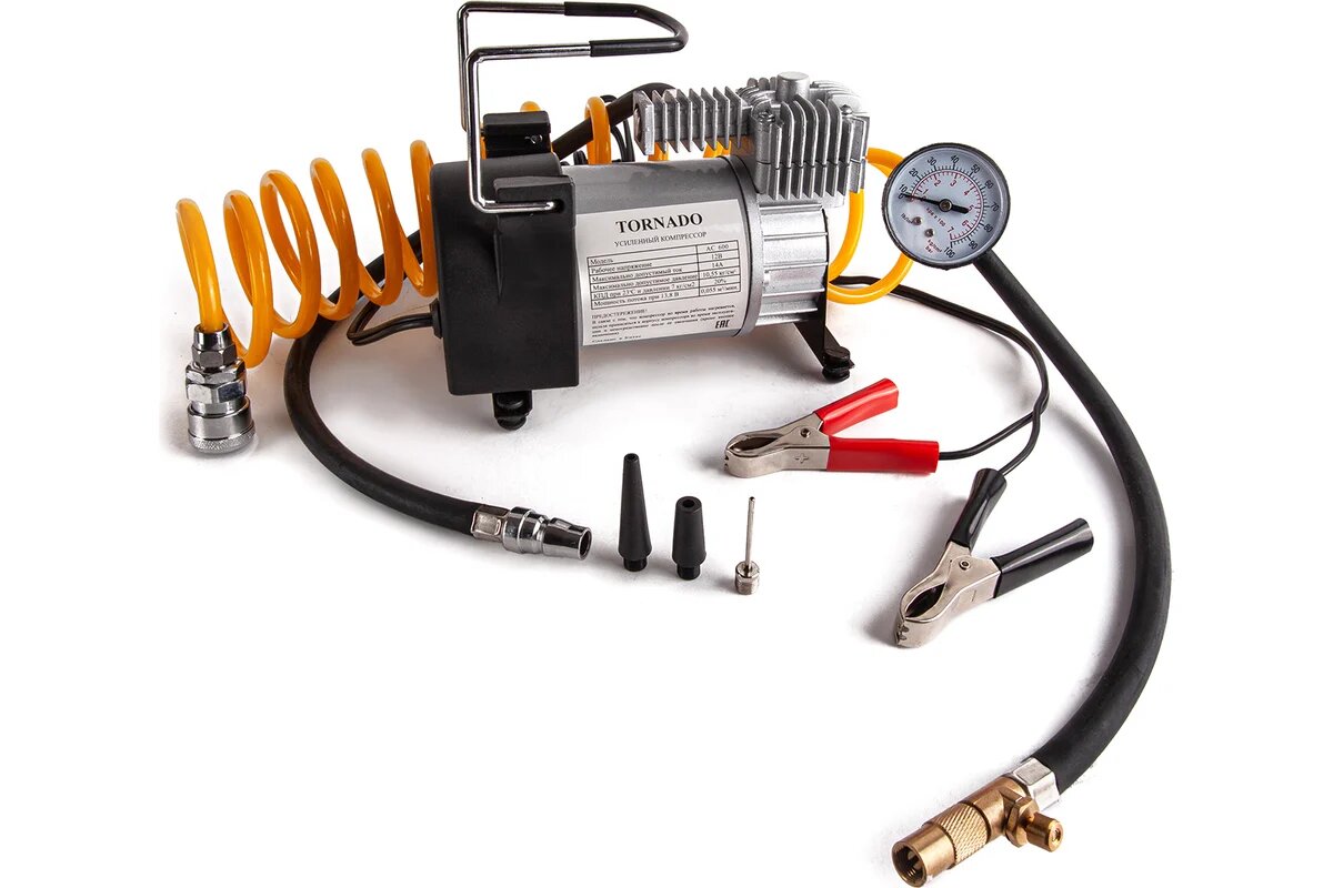 СохранитьКомпрессор TORNADO с воздушным шлангом, 35 л/мин, 12 Вольт, с аналоговым манометром интересное: