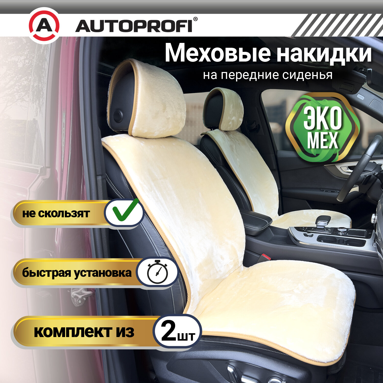 Накидки меховые AUTOPROFI на перед. сиденья, 2 шт, искусственный мех, бежевые MEX-401 BE