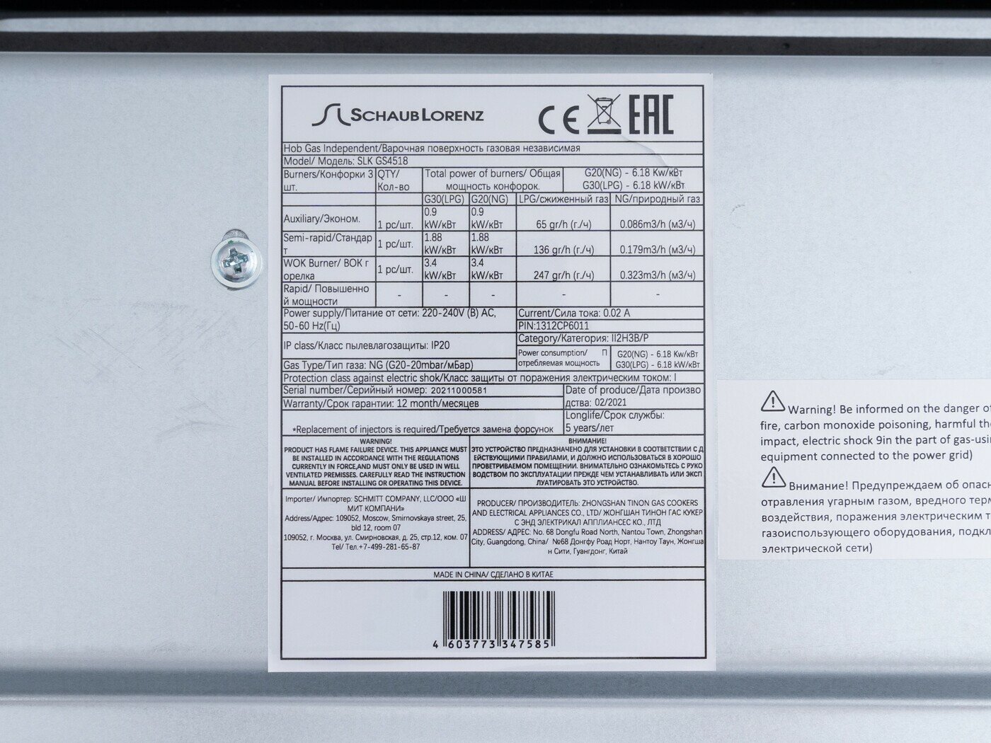 Газовая встраиваемая варочная панель Schaub Lorenz SLK GS4518, 45см, чёрный, автоподжиг, газ-контроль. интересное: