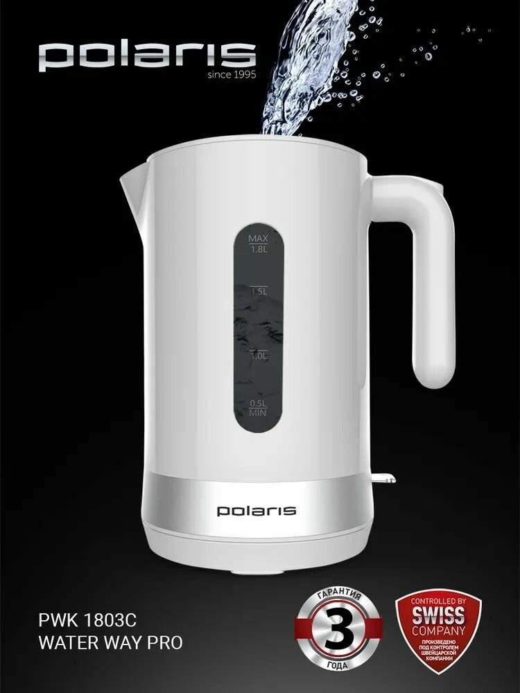 Чайник Polaris PWK 1803C Water Way Pro , пластик Черный PWK 1803C .