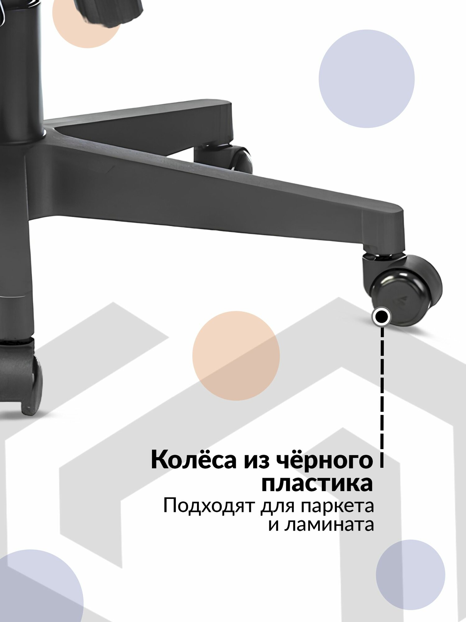 | Плюсы: | Прорезиненные колеса, регулировка высоты и угла спинки, удобный подголовник, выдерживает вес 120 кг. |